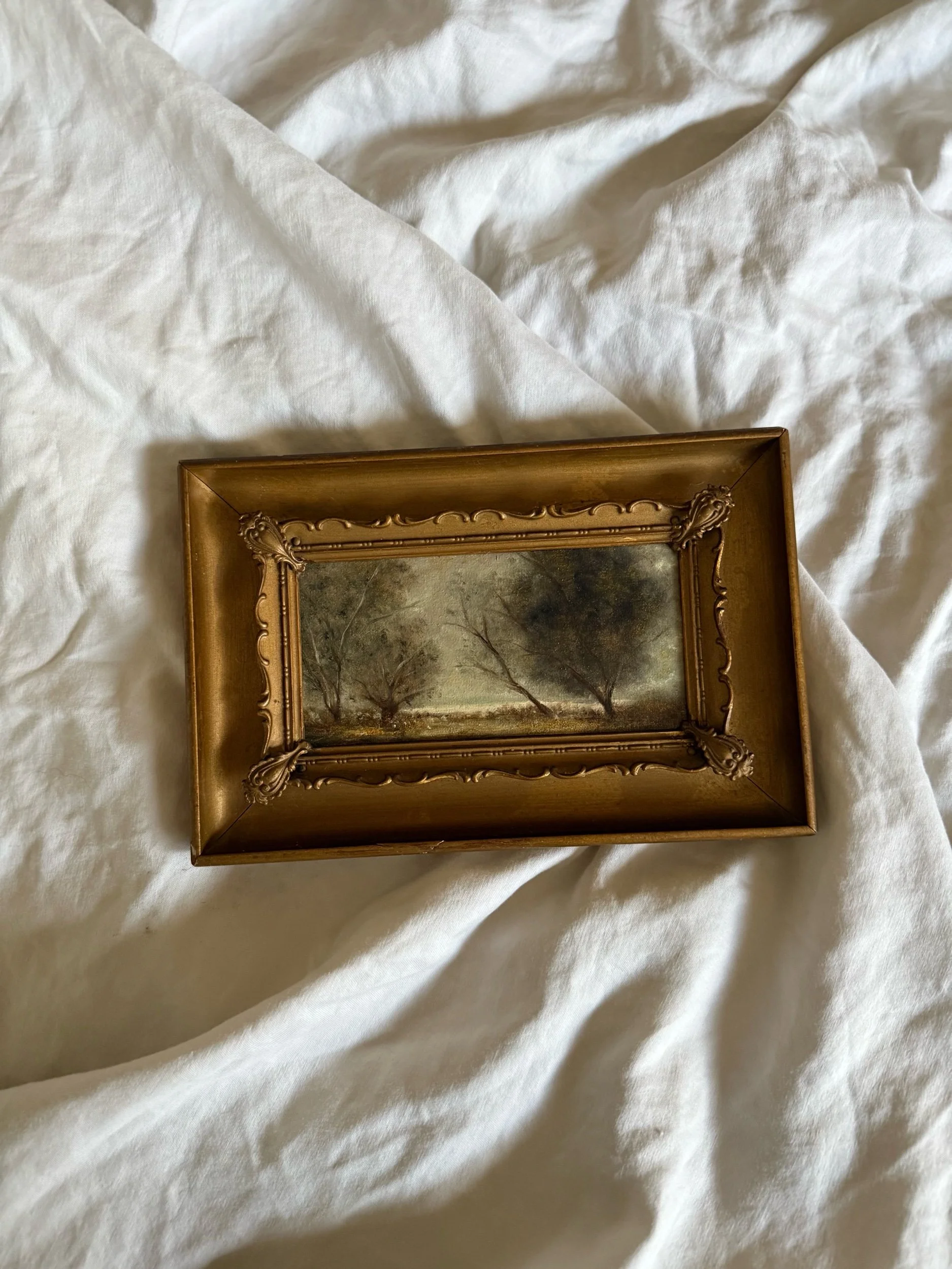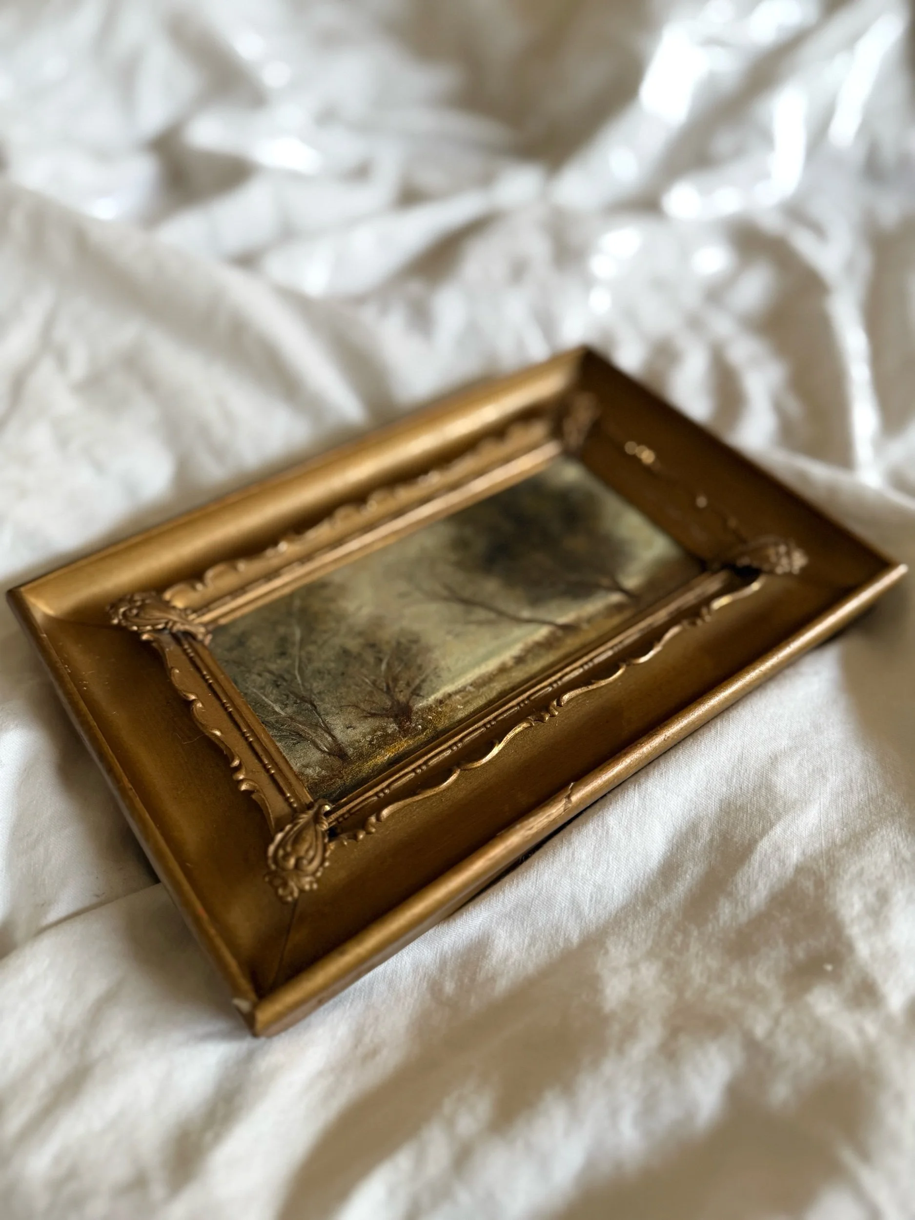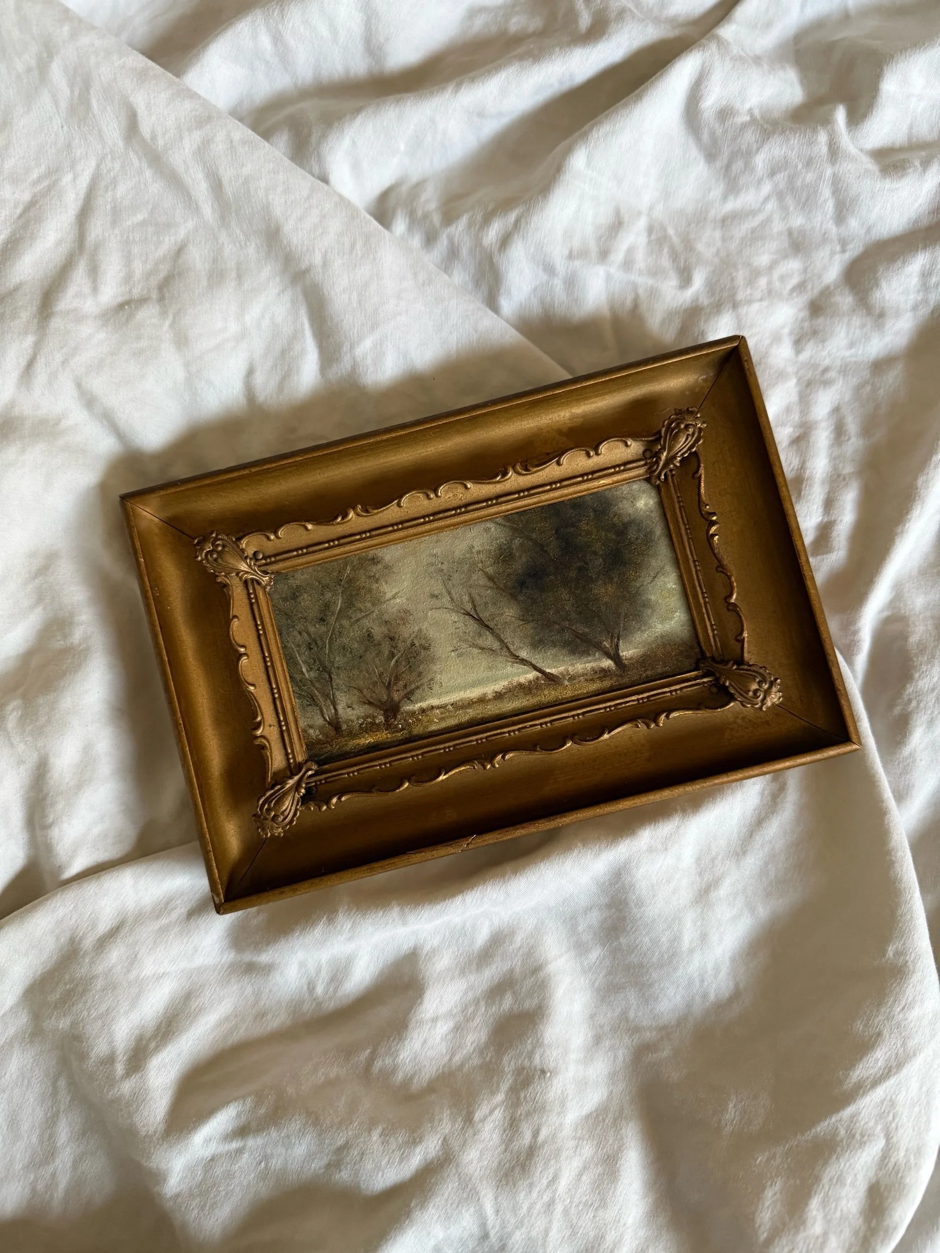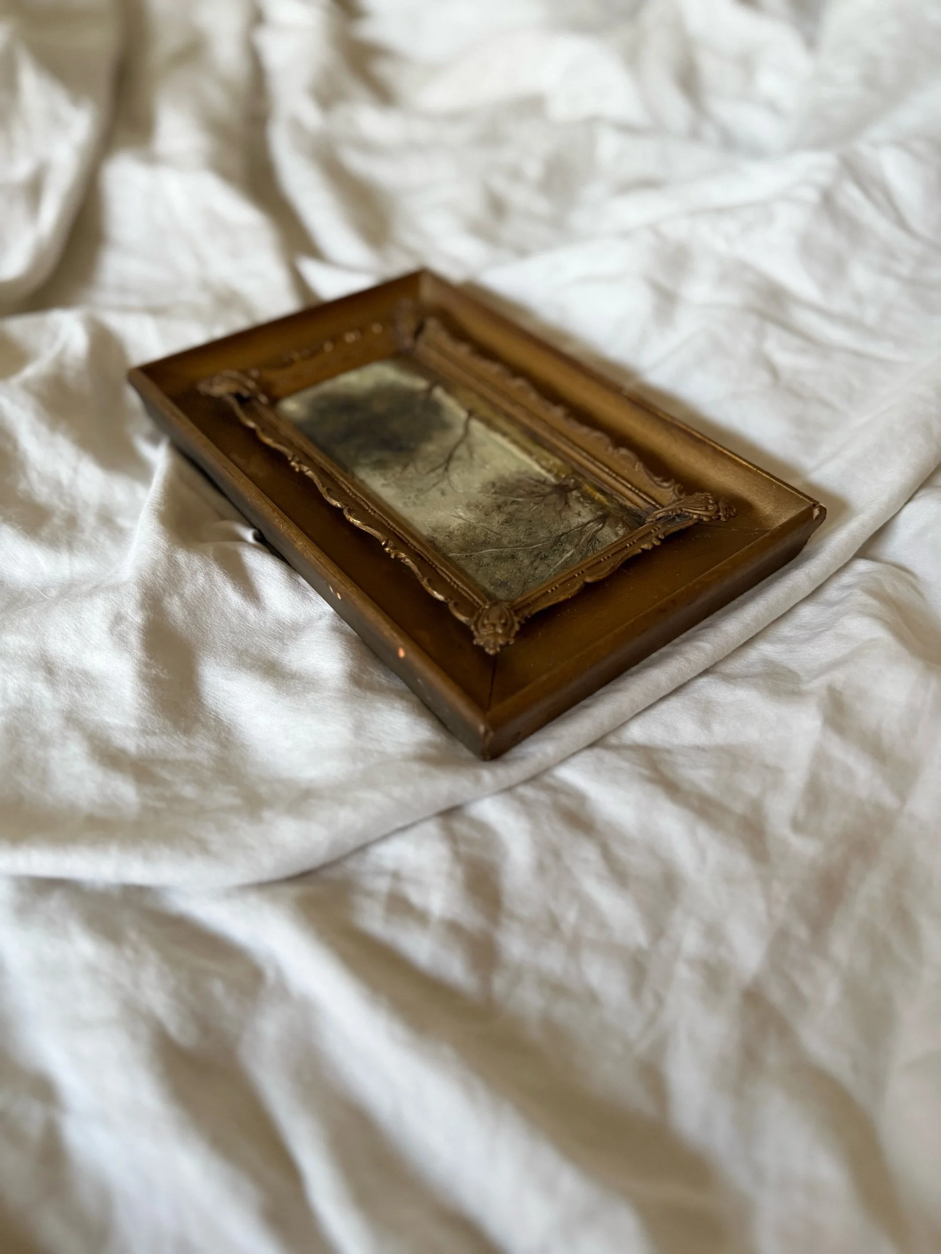 5” x 7 5/8” vintage wooden frame with metal inlay.